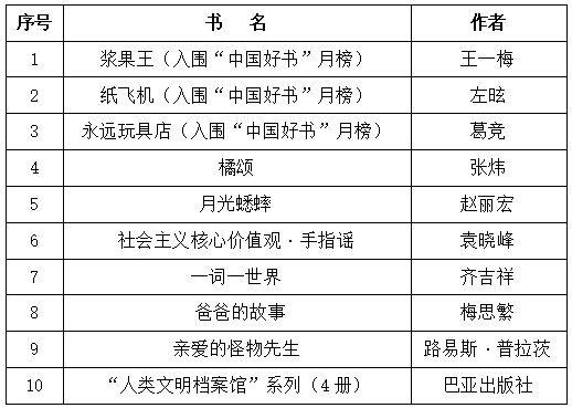 “中国好书”少年儿童阅读演说短视频分享活动推荐书目