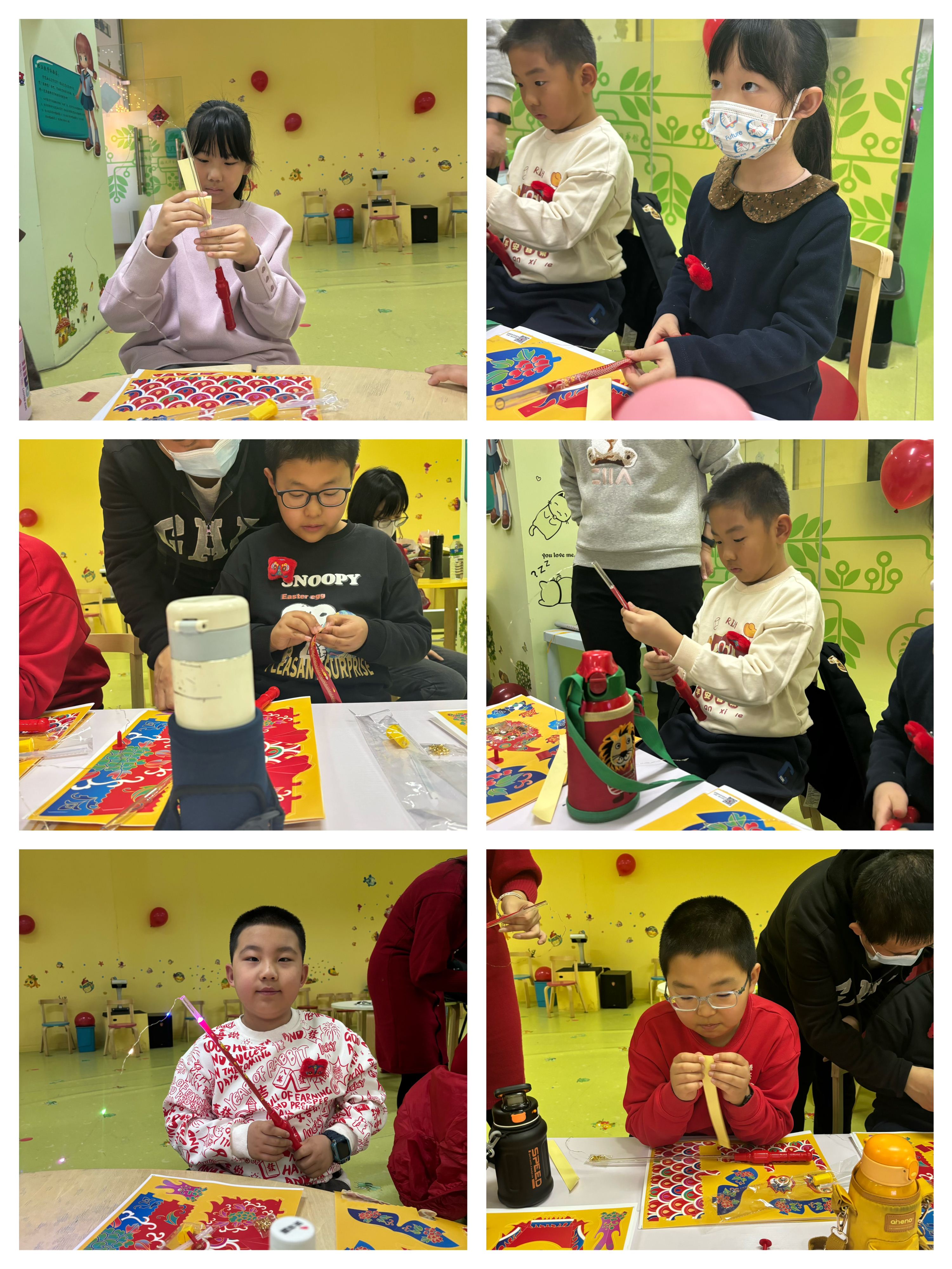 馆员老师们一共准备了三个活动环节,通过场景的转换使小朋友们能够更加直观地体验年俗的魅力。第一个场景通过春节习俗科普、绘本故事分享、古人春节的仪式感介绍相关内容让小朋友们初步了解各个朝代的年俗以及南北文化的差异。小朋友们在分享交流中,不断丰富年俗文化知识。随后,在老师们的带领下,小朋友们开始制作非遗龙灯,看着亲手制作的五彩生动的舞龙灯笼,小朋友们爱不释手,脸上洋溢着自豪和喜悦。