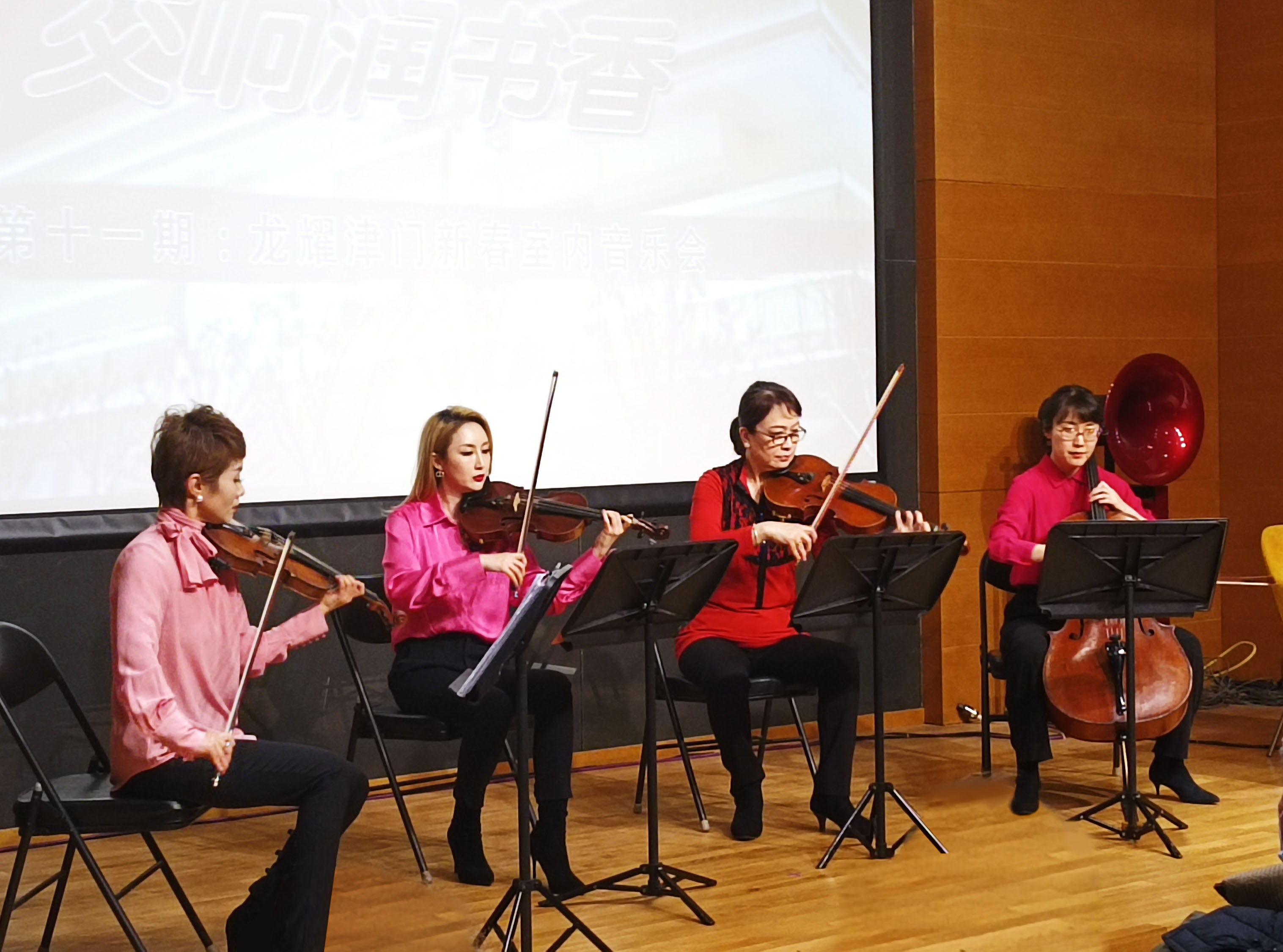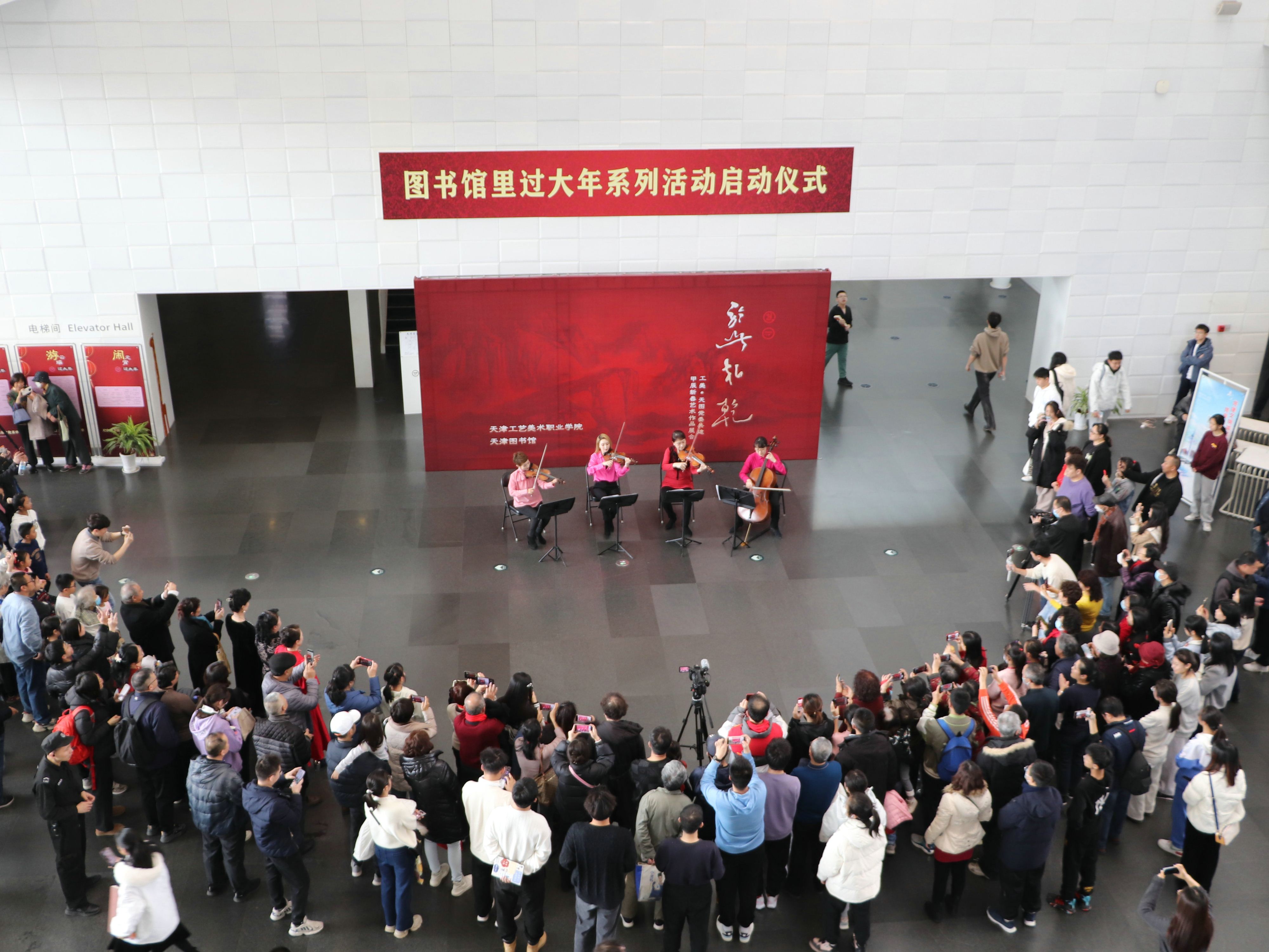 “欢乐京津冀,一起过大年”。对接天津文旅“十大暖心服务”之一的 “场站有快闪”,2月17日下午2:30,天津图书馆携手天津交响乐团•奇迹弦乐四重奏以快闪的形式,为来馆读者带来了一场图书与交响乐的惊喜邂逅!