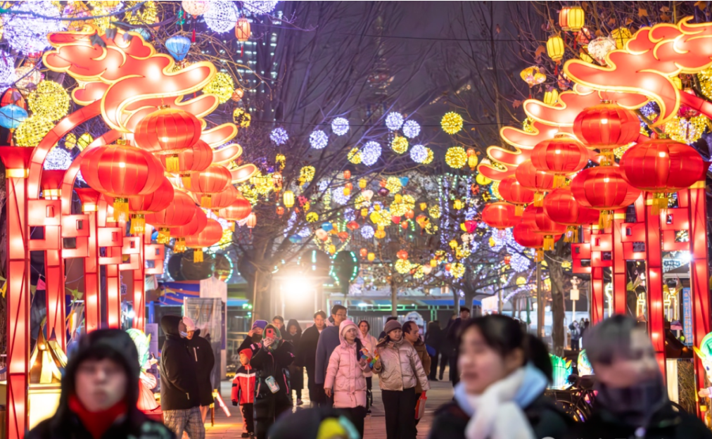 “民俗风”“文化风”融入百货商场、购物中心和市集农贸市场,成为春节消费热点。永旺梦乐城天津中北店推出特色舞龙舞狮、皮影戏、传统相声等表演,吸引众多游客前来体验。“年货展销+民俗表演”的春节市集也走俏假日市场。梅江会展中心、西沽公园、棉3创意街区、宁河友鹏新市集等重点商圈,持续展销农副产品、年宵花、新春民俗产品、年货礼盒、特色小吃等产品,同时开展非遗表演、舞龙舞狮、文化展览等民俗活动,推动人流量和销售额持续攀升。