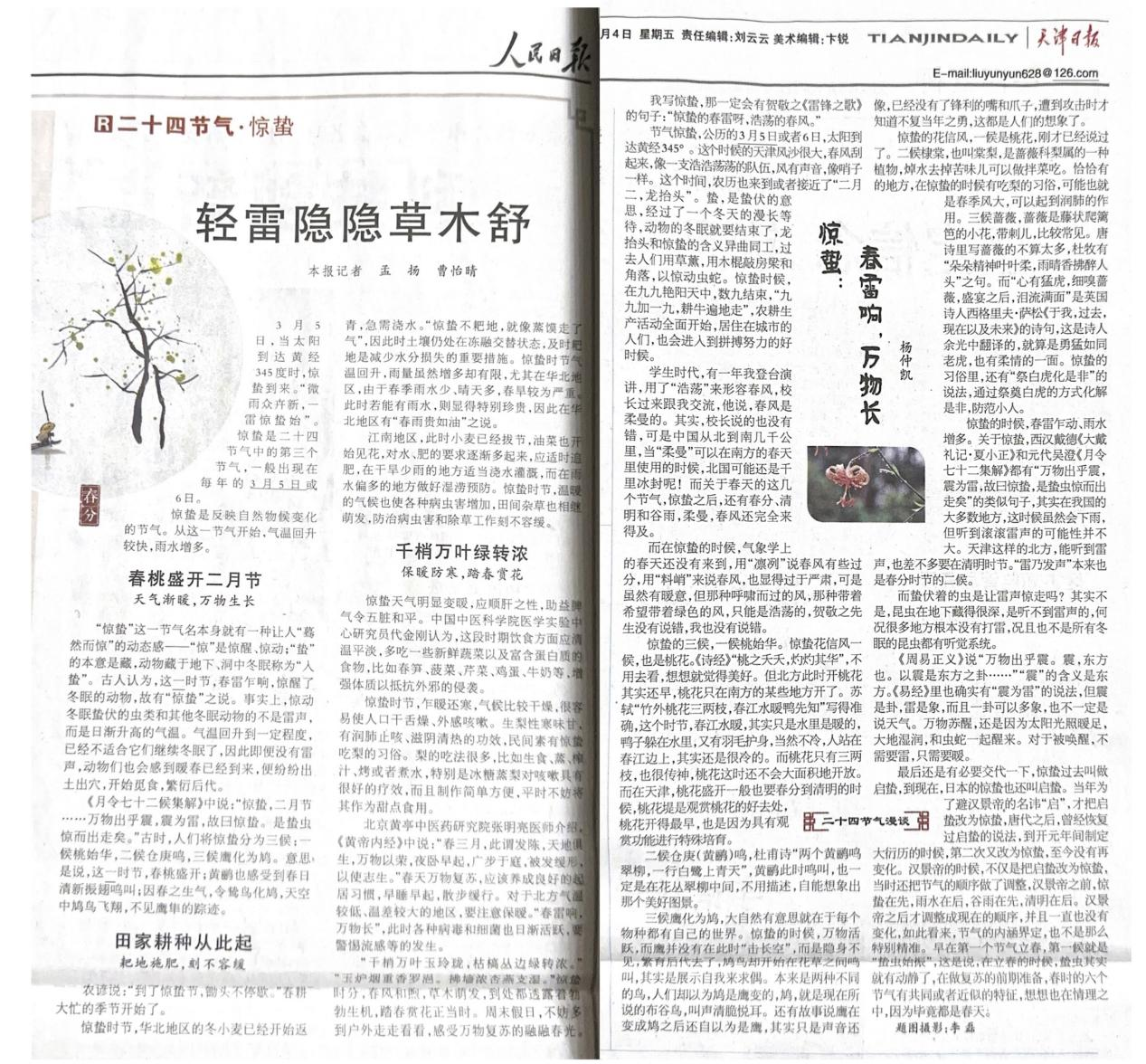 文4 《惊蛰:春雷响,万物长》摘自《天津日报》2022.03.04第12版