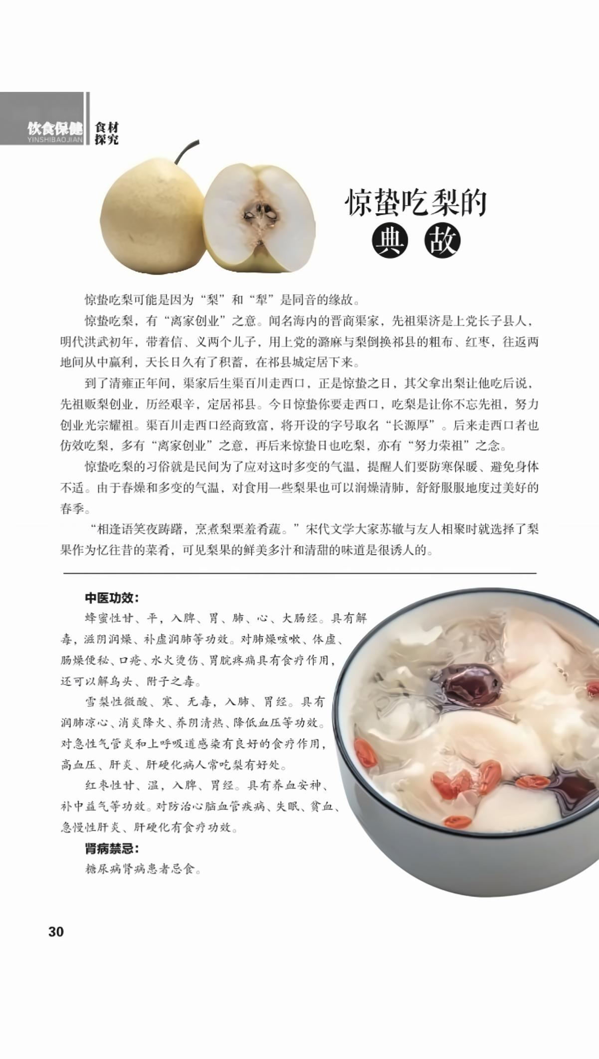 文2 《“惊蛰”吃梨润肺健脾》摘自《天津日报》2010.03.08第12版