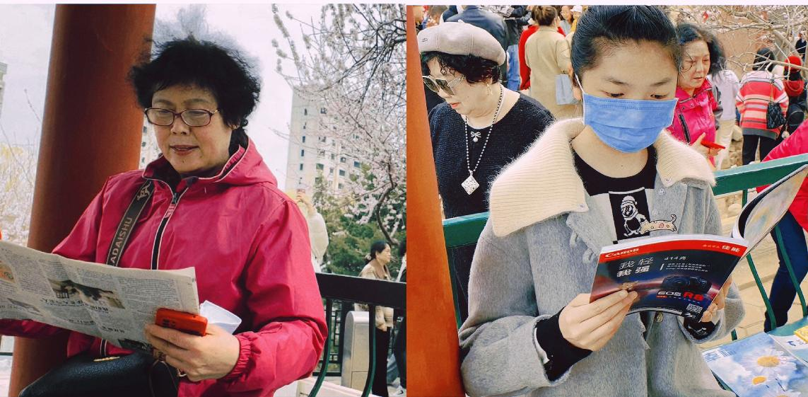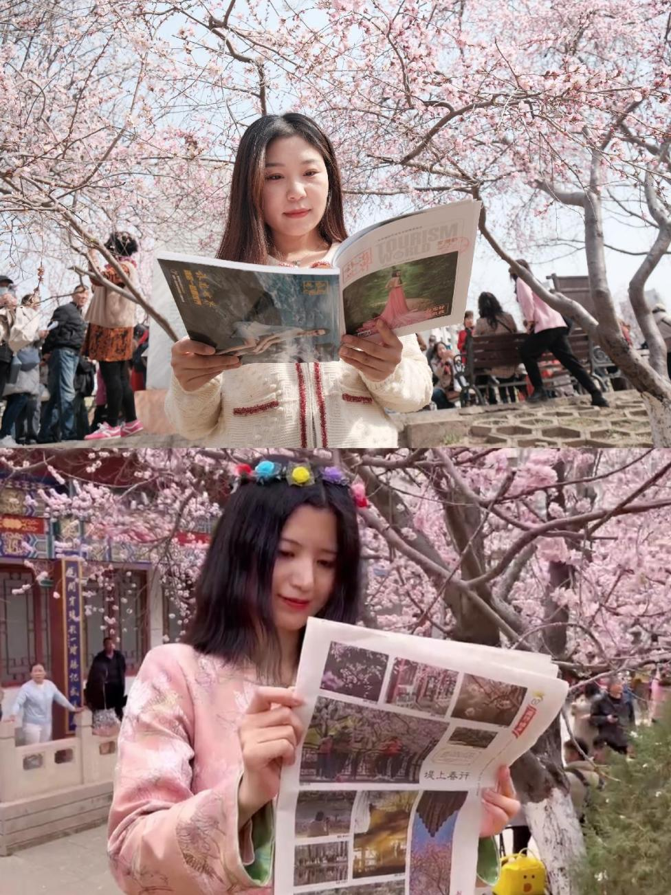 馆员们带来了《中国旅游报》《百花园》《人与自然》《旅游世界》《博物》《花卉》等应景的报刊读物,现场布置的读书角里,游客们驻足品读,静静翻阅,文字与景色交融,观大千世界,读书中妙语,共同感受春光的明媚与阅读的快乐。