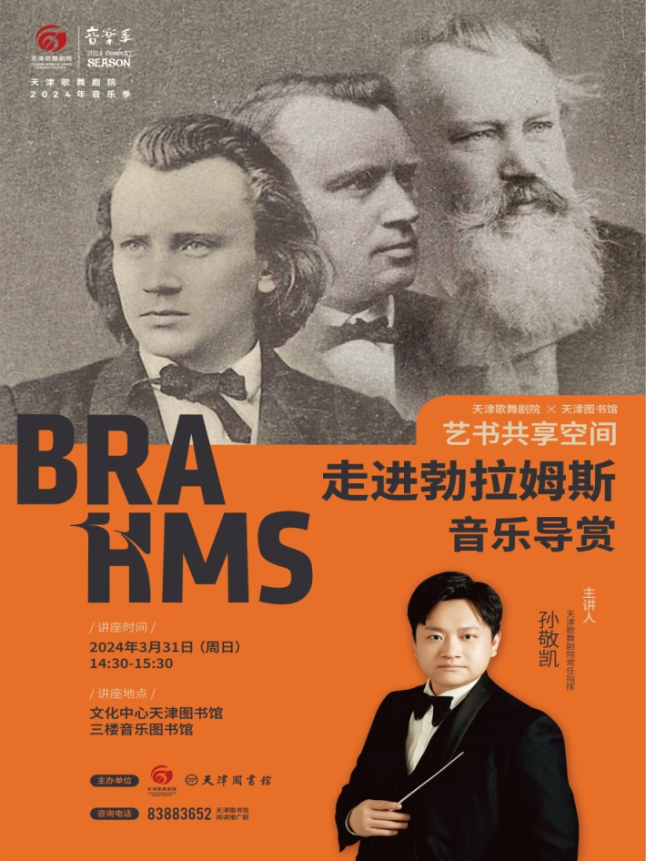 以天津图书馆馆藏勃拉姆斯唱片为依托,天津歌舞剧院常任指挥孙敬凯分析各版本CD特点,结合“勃拉姆斯系列音乐会”曲目进行音乐导赏并配合现场片段欣赏,让观众更深入了解大师的音乐及音乐背后的故事。