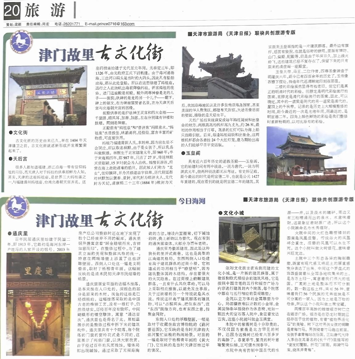文1 《游古文化街登玉皇阁》摘自《天津日报》2013.08.01 第10 版