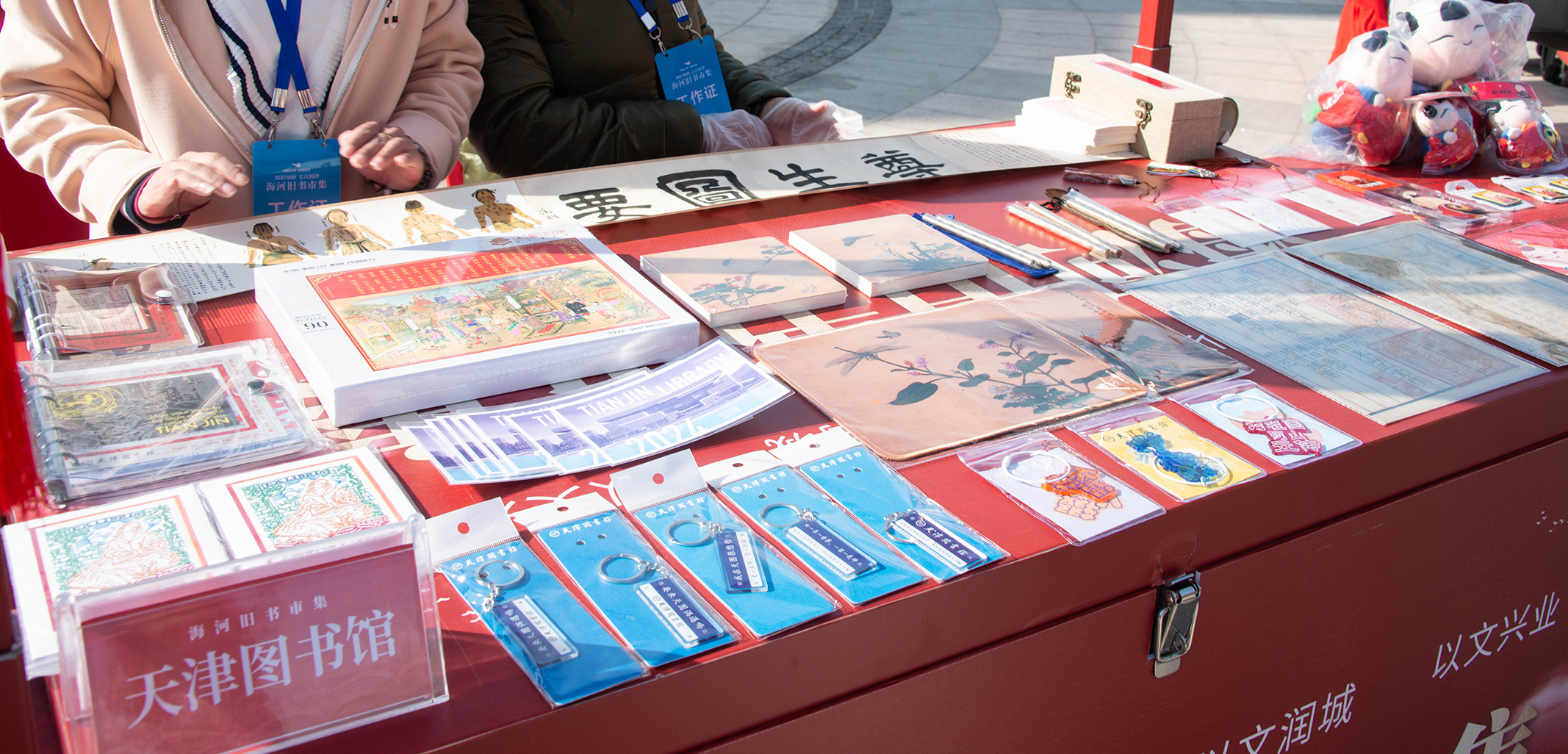 在活动现场“文创展示”区域的“天津图书馆文创展位”,天津图书馆设计开发的文创产品亮相“海河旧书市集”,吸引了众多市民朋友前来参观和购买。我们以文创产品为载体,通过优秀传统文化与现代设计相结合方式,将古籍文献浩如烟海的内容之美、古朴厚重的书法之美、精致典雅的印章之美等传递出去,使广大人民群众在感受传统文化熏陶的同时,进一步增强文化获得感和满足感。