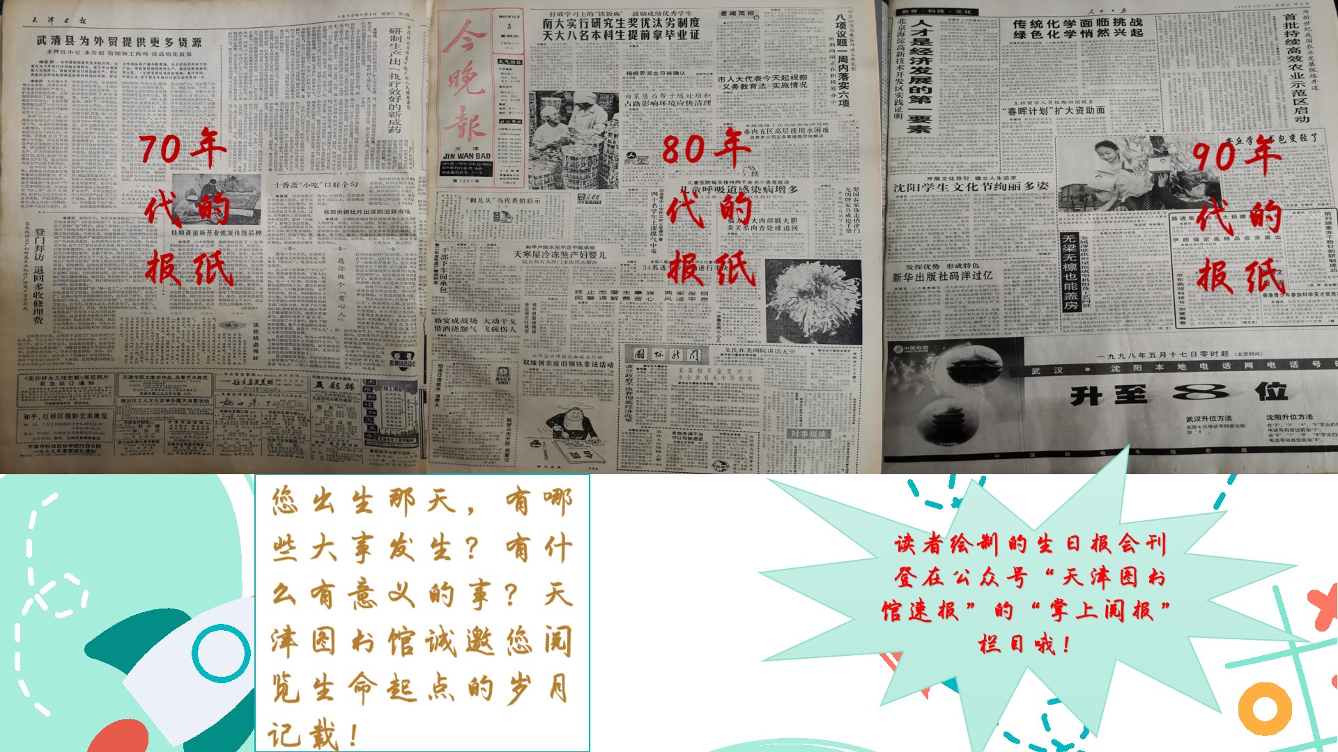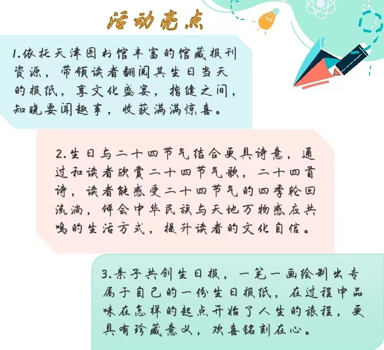 4. 读者绘制的生日报将陆续展示在 “天津图书馆速报” 微信公众号“掌上阅报”栏目中。