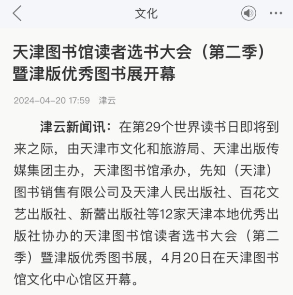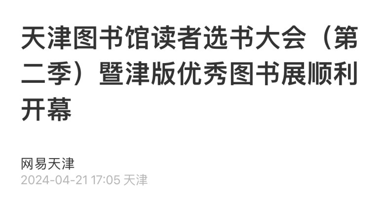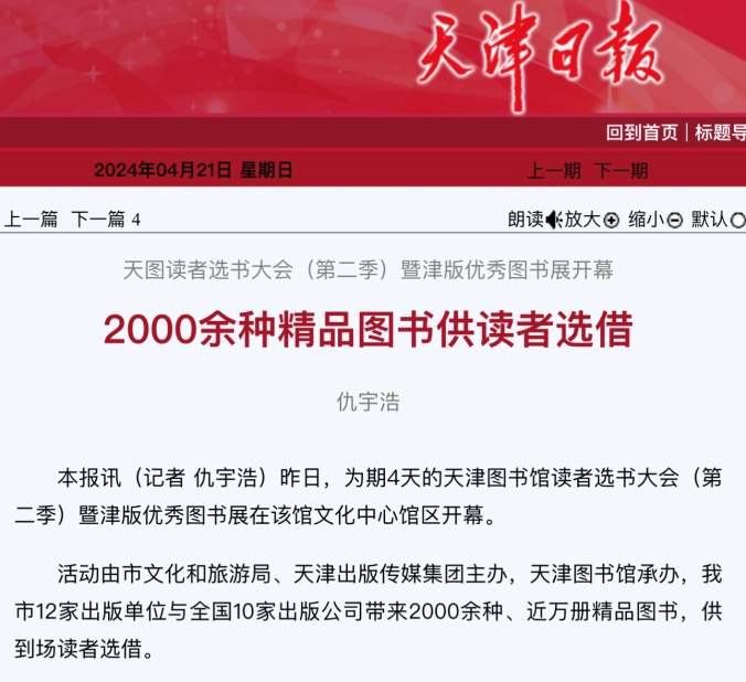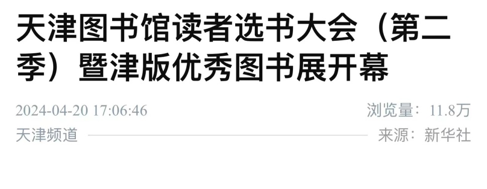 2024年4月20日—4月23日,持续4天的天津图书馆读者选书大会(第二季)暨津版优秀图书展在天津图书馆文化中心馆区圆满收官。