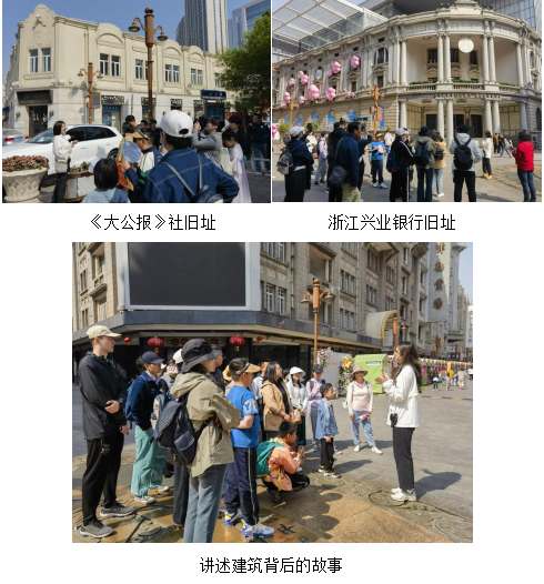 4月21日,天津图书馆联合天津科学技术出版社、每日新报共同开展“场景式”阅读体验——“城市穿越·追寻红色记忆”活动,结合《天津百座建筑中的百年党史》一书,深入挖掘城市空间、城市建筑的红色内涵,带领读者前往天津的“百年商脉传承地”——和平路,进行一场沉浸式红色阅读之旅,回望城市记忆,探寻津沽遗迹,感受天津的历史与文化底蕴。