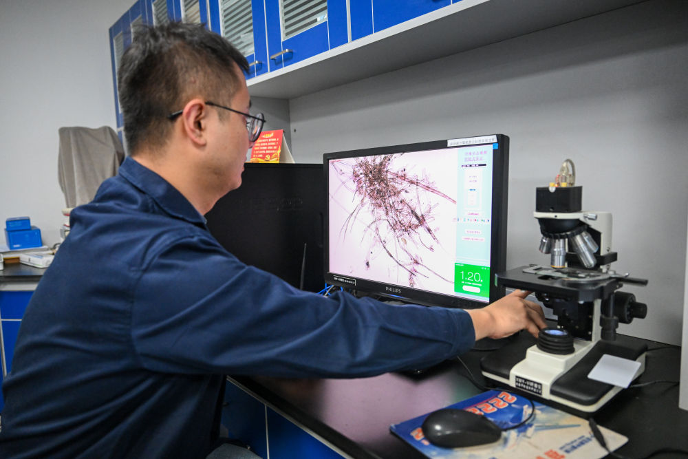 身着深蓝色工装的高学淼打开仪器设备,微蹙双眉、屏息凝神,手拿镊子、小心翼翼地剥离出古籍中一页泛黄纤薄的纸张,放在纤维仪下进行检测。纸张纹理、受损细节等古籍的“基因密码”在电脑屏幕上逐一呈现。