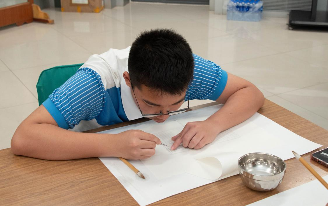 此次活动由天津图书馆与南开区图书馆合作开展。活动伊始,先由天津图书馆古籍文献部的老师为天津中学的同学们进行古籍基础知识的讲解,通过“什么是古籍?”“古籍装帧形式有哪些?”“古籍在流传过程中会受到哪种类型的损害?”等一系列问题引发大家对古籍保护的认知与思考,进而产生亲手参与修复、体验非遗技艺的浓厚兴趣。接下来,在各位的老师指导下,同学们进行了“古籍书叶修复”和“碑帖传拓”两项体验活动。在实际操作中,同学们感受到了修复工作的不易,也在克服困难、完成作品后获得了满满的成就感。