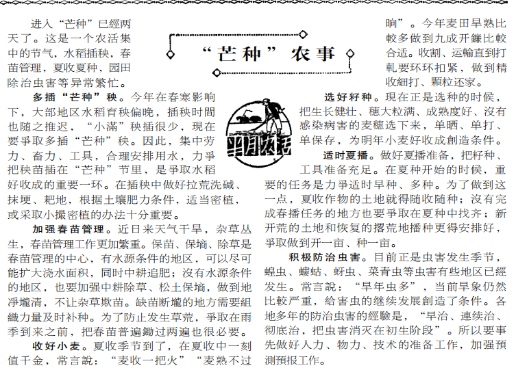 文2《“芒种”农事》摘自《天津日报》1962.06.08第02版