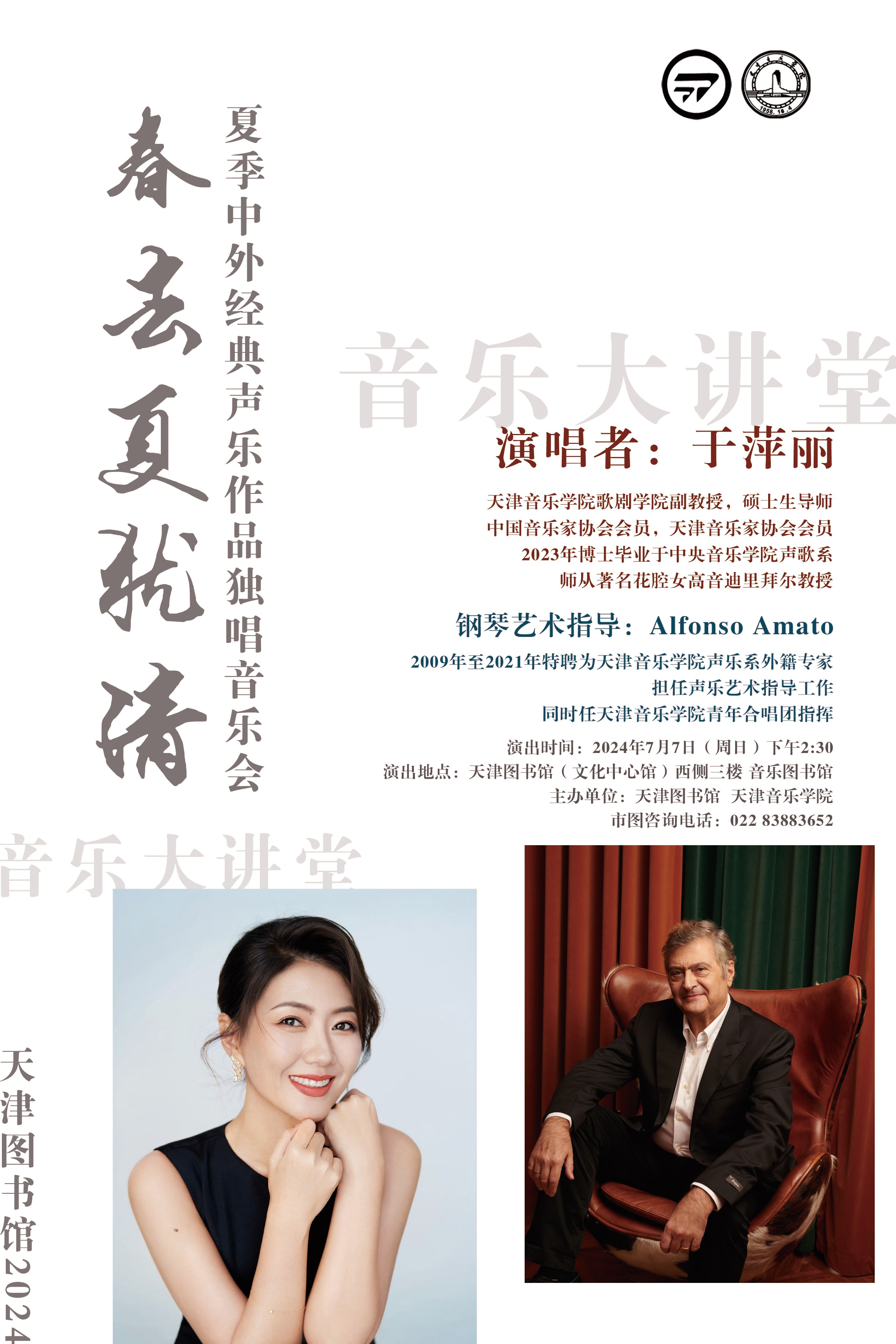 音乐会预约|春去夏犹清——天津图书馆2024夏季中外经典声乐作品独唱音乐会