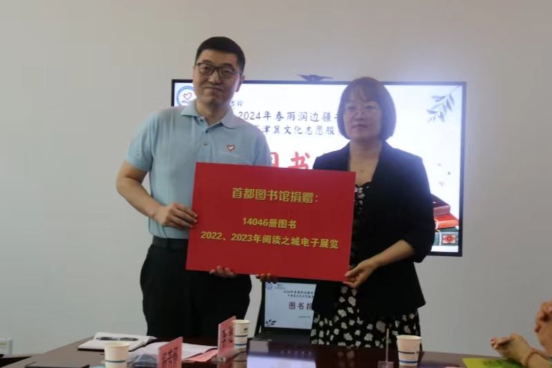 阅读润心,“志”爱无疆。座谈会中,刘朝副馆长、丁若红副馆长、张维组长分别代表首都图书馆、河北省图书馆、天津图书馆向和田地区图书馆进行捐赠。共计捐赠文史、科技、少儿等主题的图书14046册;2022、2023年“阅读之城”图书推荐活动年度推荐图书展览、现代诗歌唯美诗集展、诗经展等电子展览4项;《数字图书馆原理及应用》《文献学概论》《信息资源建设》《阅读写作与创作》《新时代的文学意象》等涉及图书馆业务培训与阅读主题相关的线上讲座19场;以及“石门情报站”红色主题桌游工具箱1套。