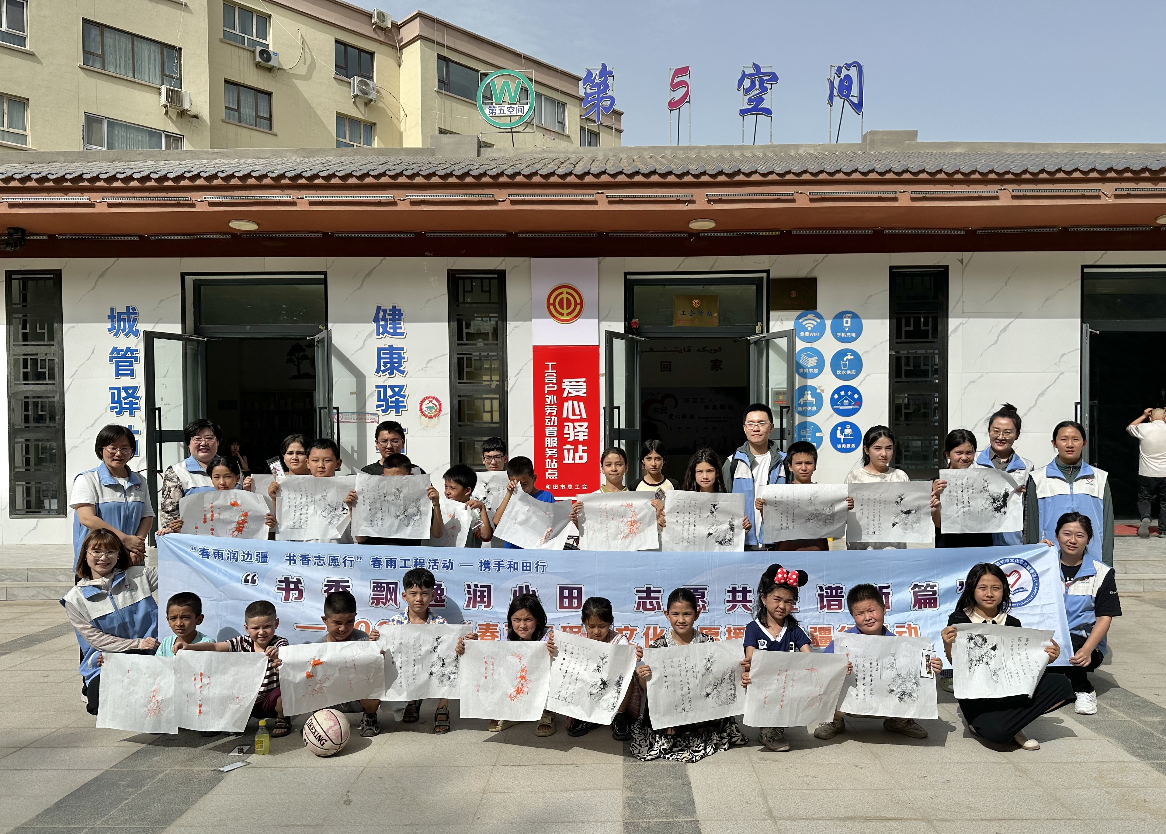 下午,三地志愿者们一起前往和田市古江巴格街道阔塔克社区开展活动,带领社区的孩子们一起体验雕版印刷术。