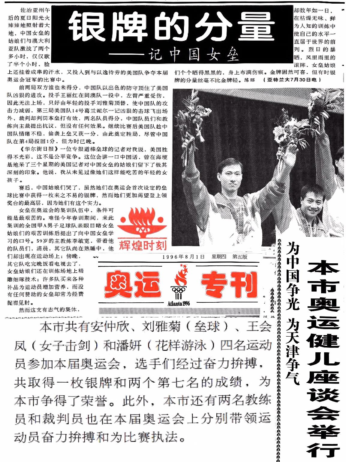 文1 《银牌的分量——记中国女垒》摘自《天津日报》1996.08.01 第05版