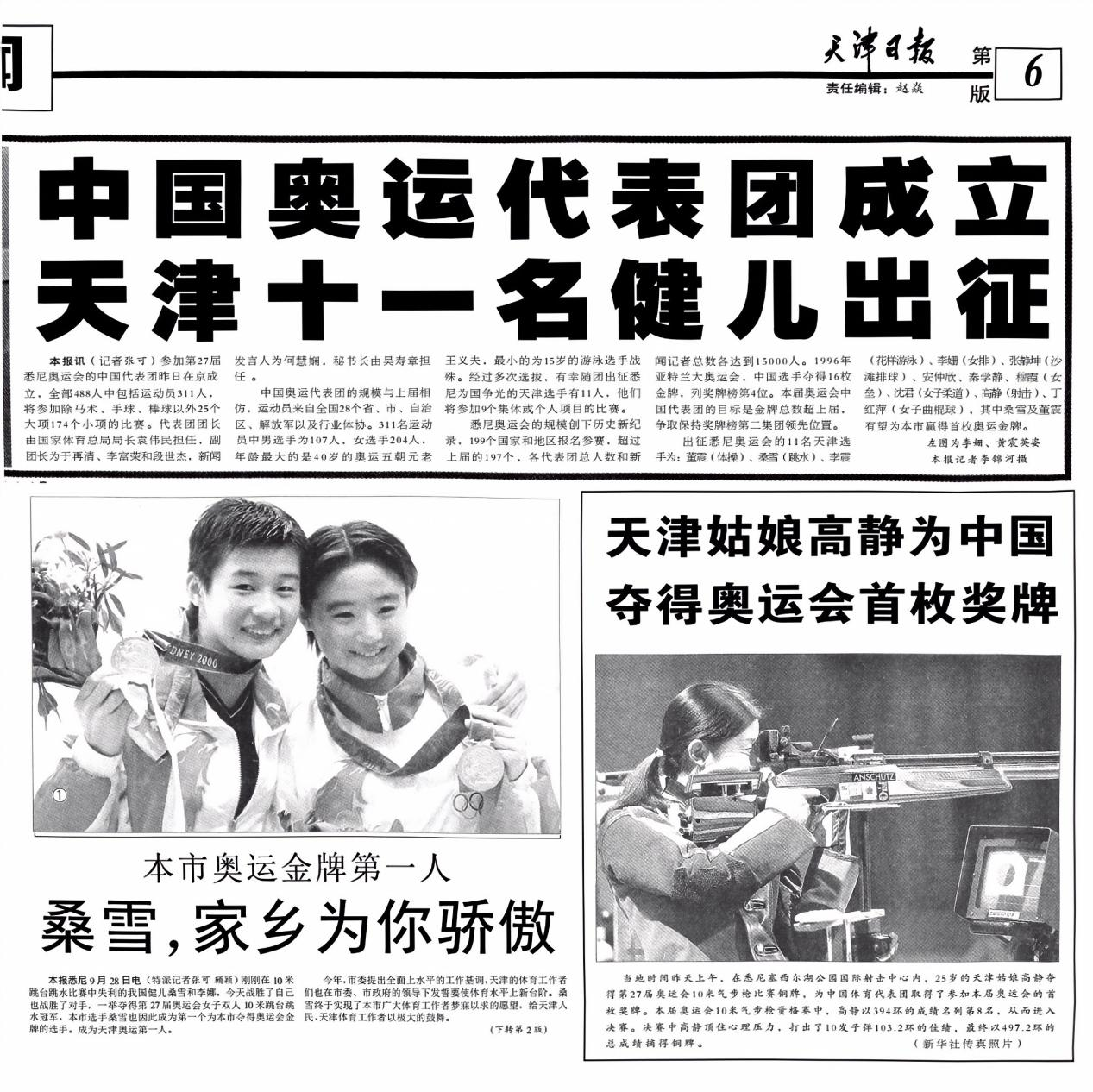 文1 《中国奥运代表团成立 天津十一名健儿出征》摘自《天津日报》2000.08.28 第06版