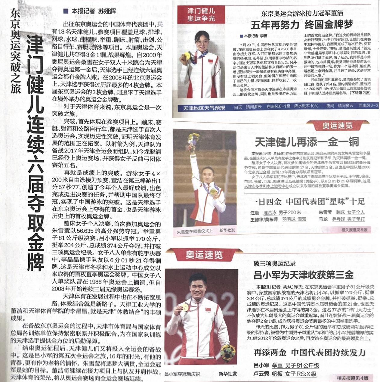 文1 《津门健儿连续六届夺取金牌》摘自《天津日报》2021.08.08第01版