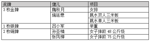 共18名天津健儿出征,夺得3金1铜的好成绩。