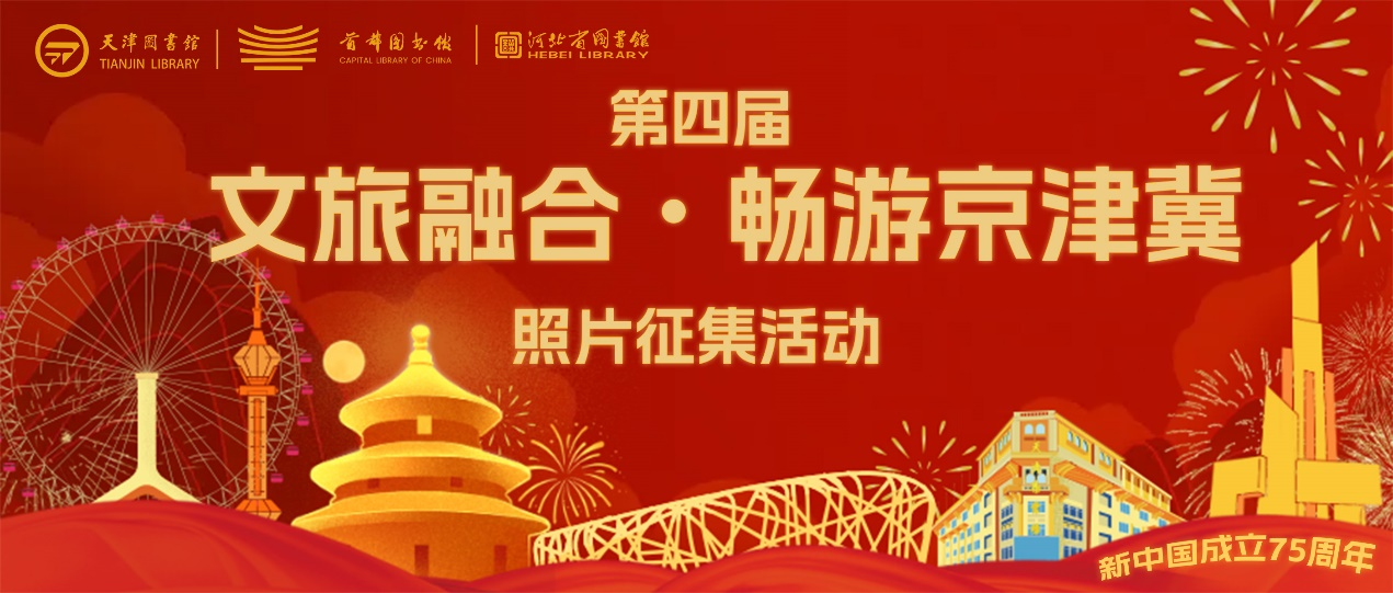 2024年是新中国成立75周年,京津冀协同发展上升为国家战略十周年,为促进京津冀三地图书馆事业高质量发展,提升京津冀三地假日旅游热度,京津冀三地图书馆携手举办第四届“文旅融合 畅游京津冀”照片征集活动,将全方位、多视角展现京津冀三地文化内涵和旅游资源。这不仅是一场视觉的盛宴,更是一次心灵的旅行,欢迎读者朋友们踊跃参与!