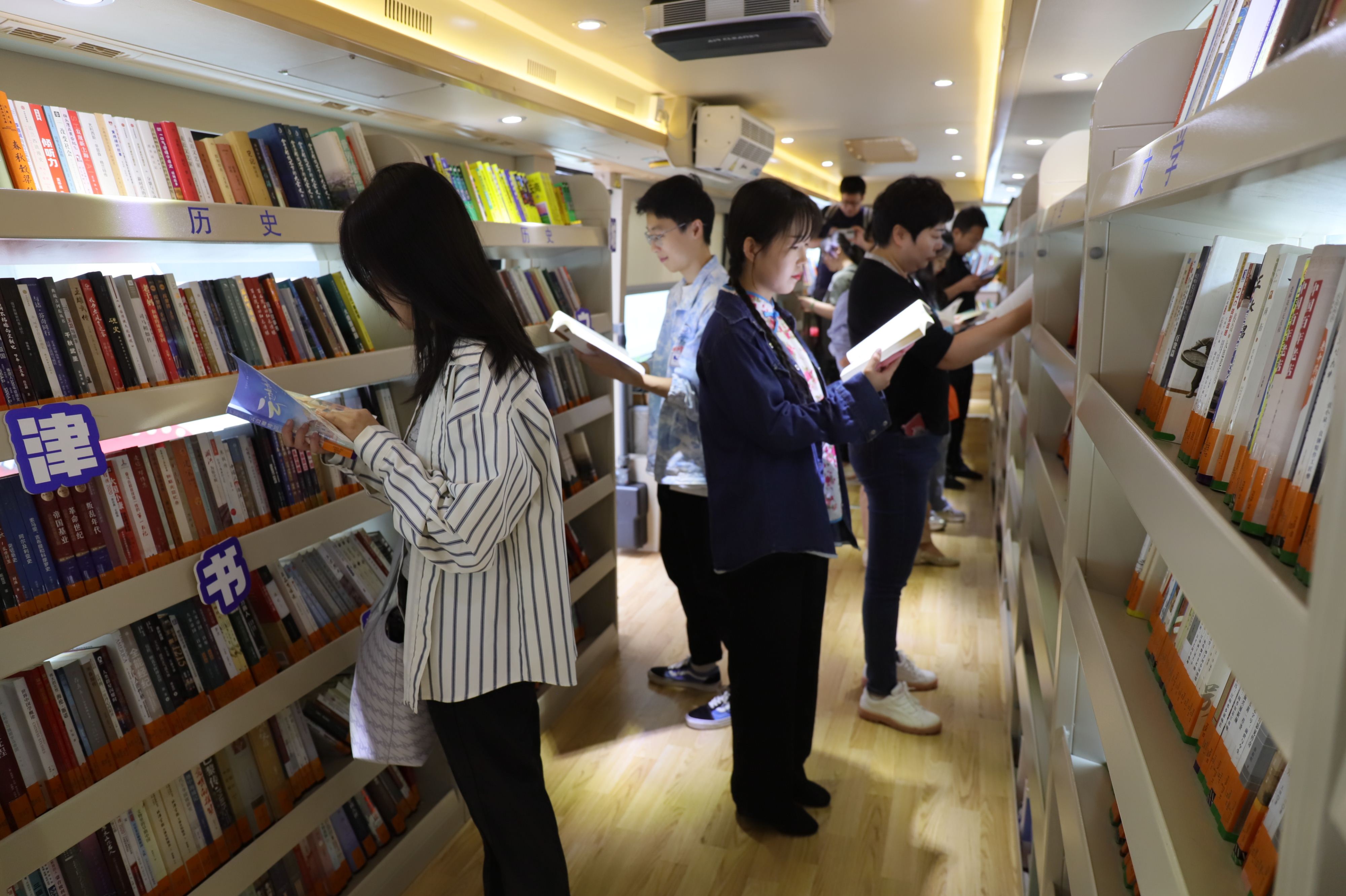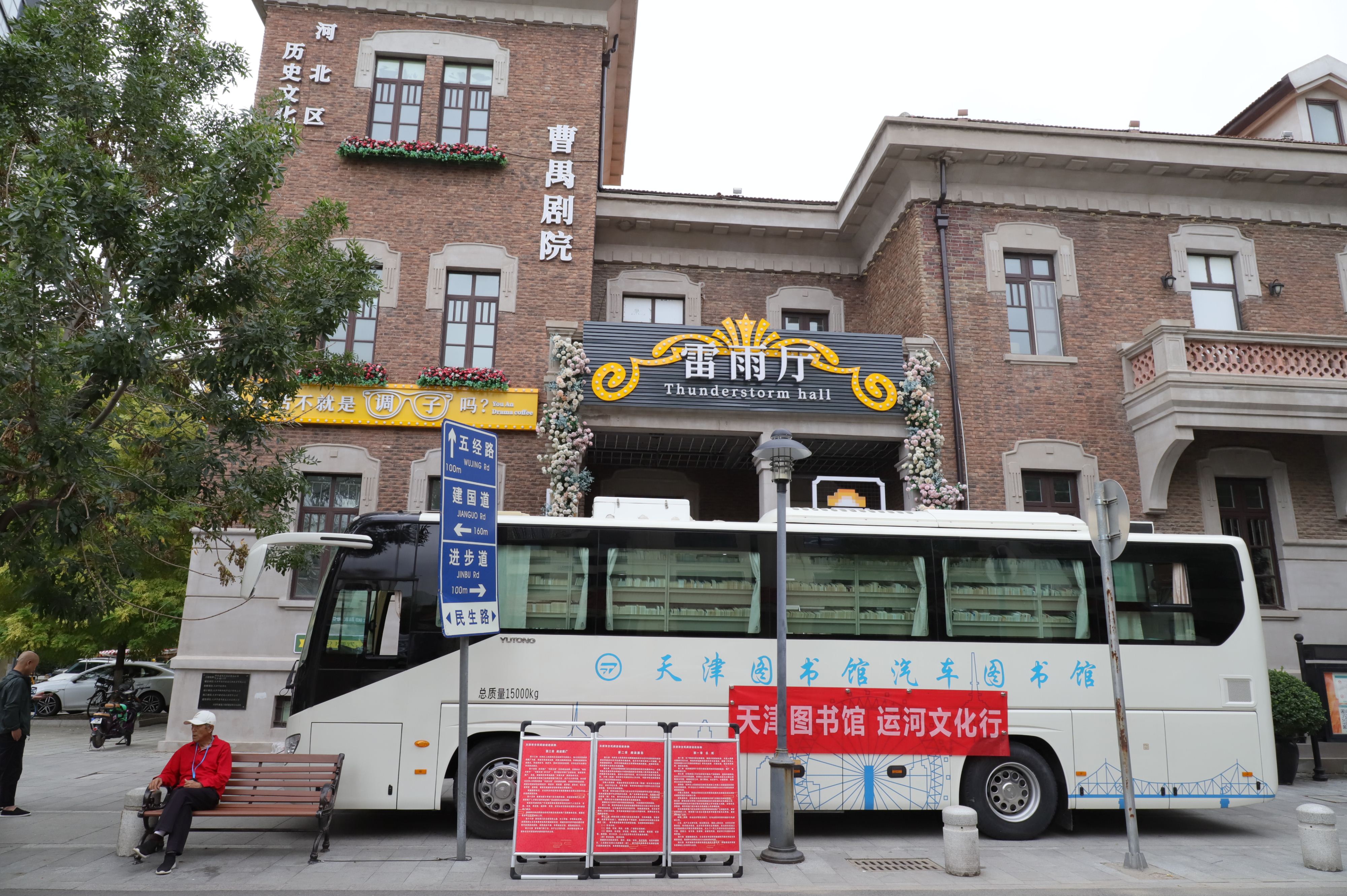 汽车图书馆精心筹备,为广大读者带来了一场丰富多元的“运河文化”体验。活动中,汽车图书馆精心准备了一系列与运河文化和曹禺作品相关的书籍,为现场读者提供阅览、办证及图书借还“一站式”服务。读者们在现场翻阅图书,沉浸于运河文化的魅力之中。此外,车载电视通过生动的画面为现场读者播放精彩的运河文化视频,让读者更加直观地感受运河文化的源远流长和博大精深。同时,为推动全民阅读,汽车图书馆利用展板宣传《天津市全民阅读促进条例》,鼓励更多的人参与到阅读中来,形成良好的阅读氛围。