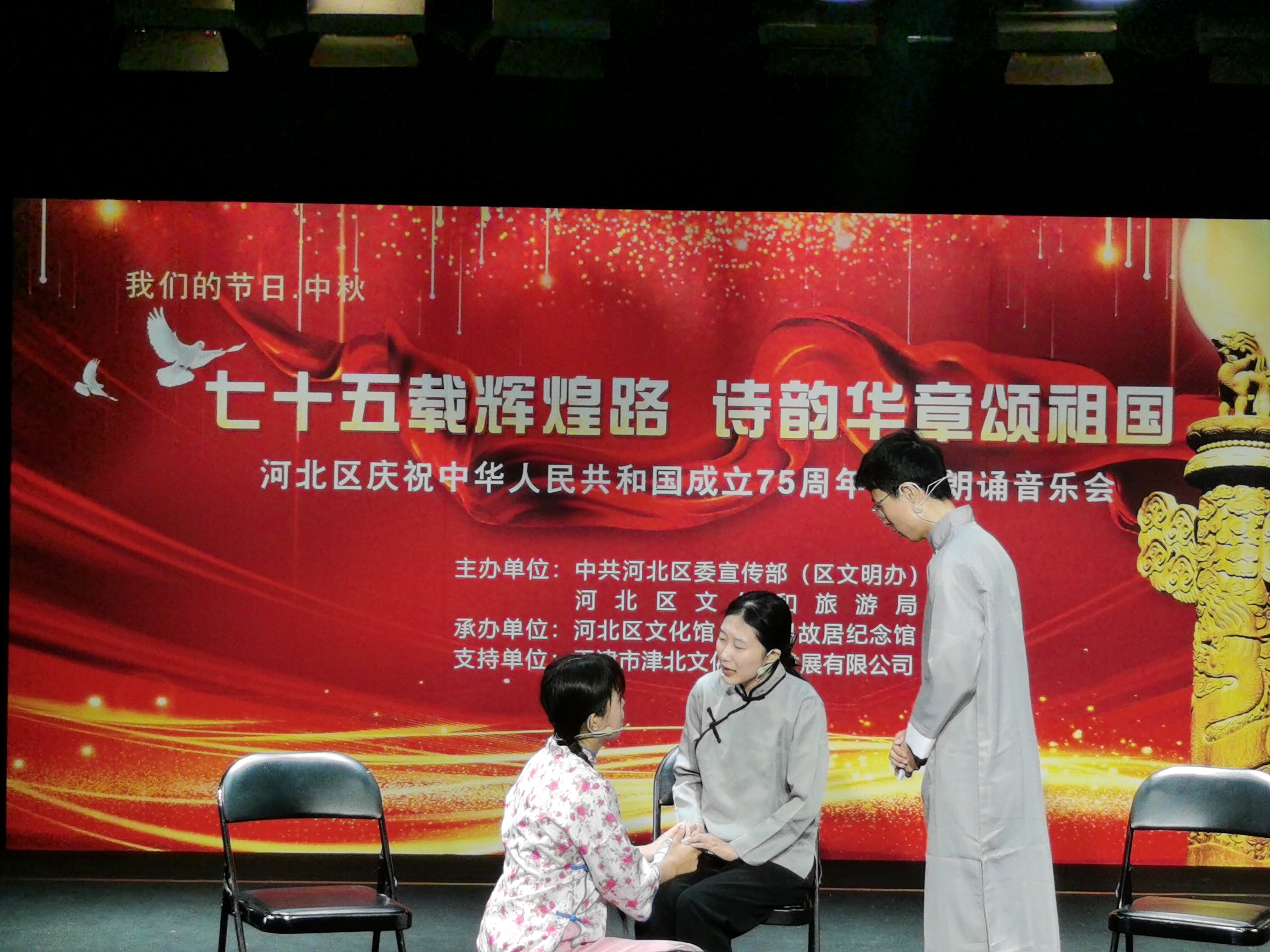在本次活动合作单位的共同参与下,现场还举办了形式多样的文化交流活动。宁河区图书馆通过《雷雨》话剧片段的精彩演绎,为经典作品带来了别具一格的沉浸式解读;河北区文化馆璞玉朗声社则呈现了“七十五载辉煌路,诗韵华章颂祖国”诗朗诵。精彩的表演让读者们充分领略了曹禺作品的艺术魅力。