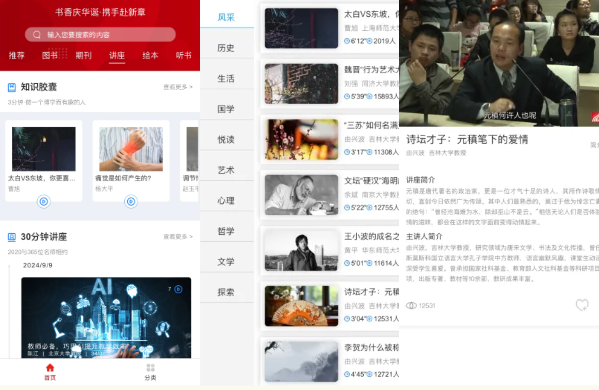 由国内外知名学者、教授独家录制的知识视频,每天30分钟,让大众与专家学者面对面。