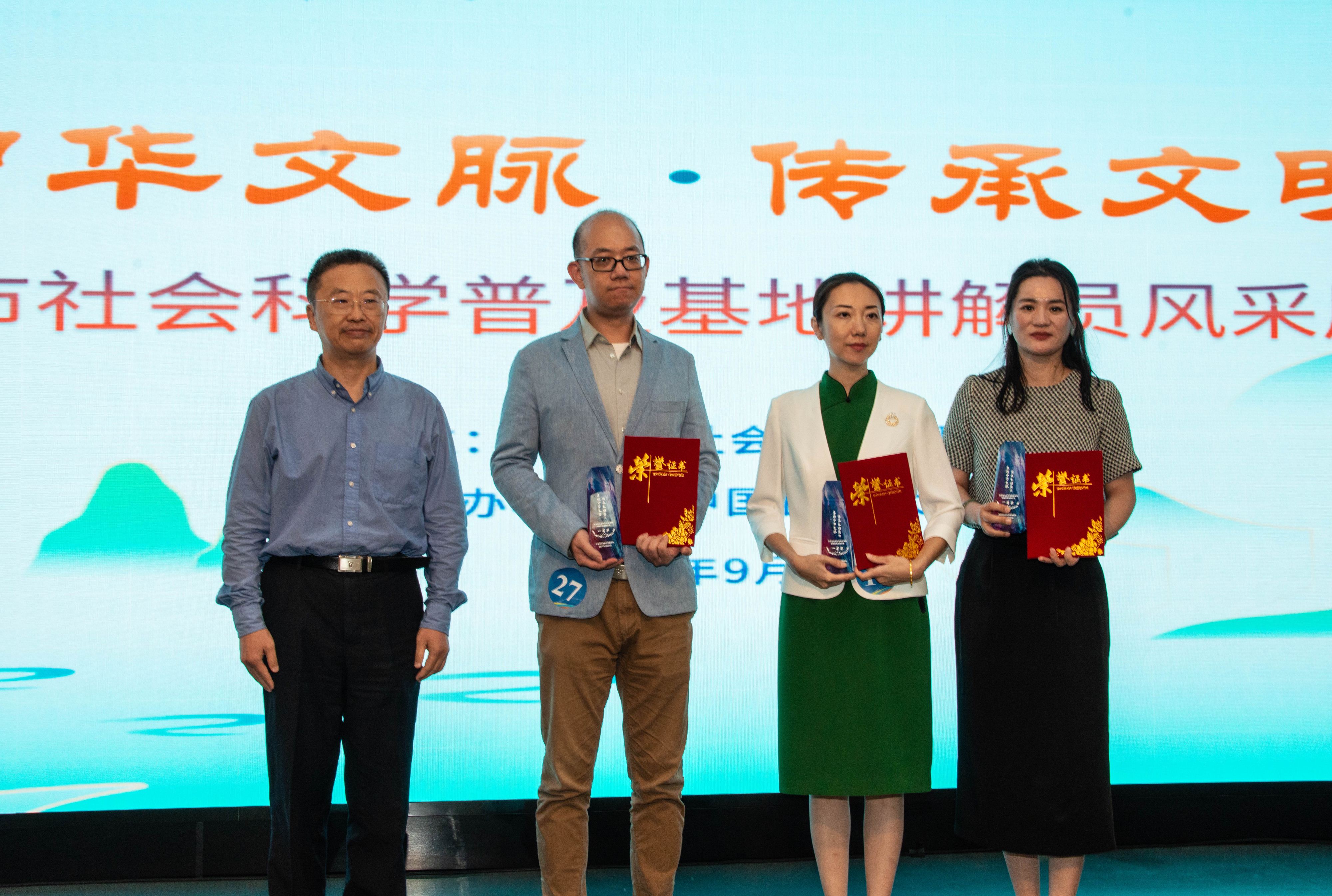 为进一步提升全市社会科学普及基地讲解员的职业技能,加强社会科学普及工作的交流与互动,拓展社科普及渠道,传承弘扬津派文化,天津市社会科学界联合会于2024年9月27日在天津民航大学国际交流中心组织举办了讲解员风采展示赛,全市共有20家科普基地,35名讲解员参赛。天津图书馆选派两位参赛选手,分别获得了全场一等奖与二等奖的好成绩。这是近年来天津图书馆在社会科学普及宣传讲解中取得的最好成绩,展现了天图人的担当作为,展现了天图人的精神风貌,更展现了天图人的时代风采。