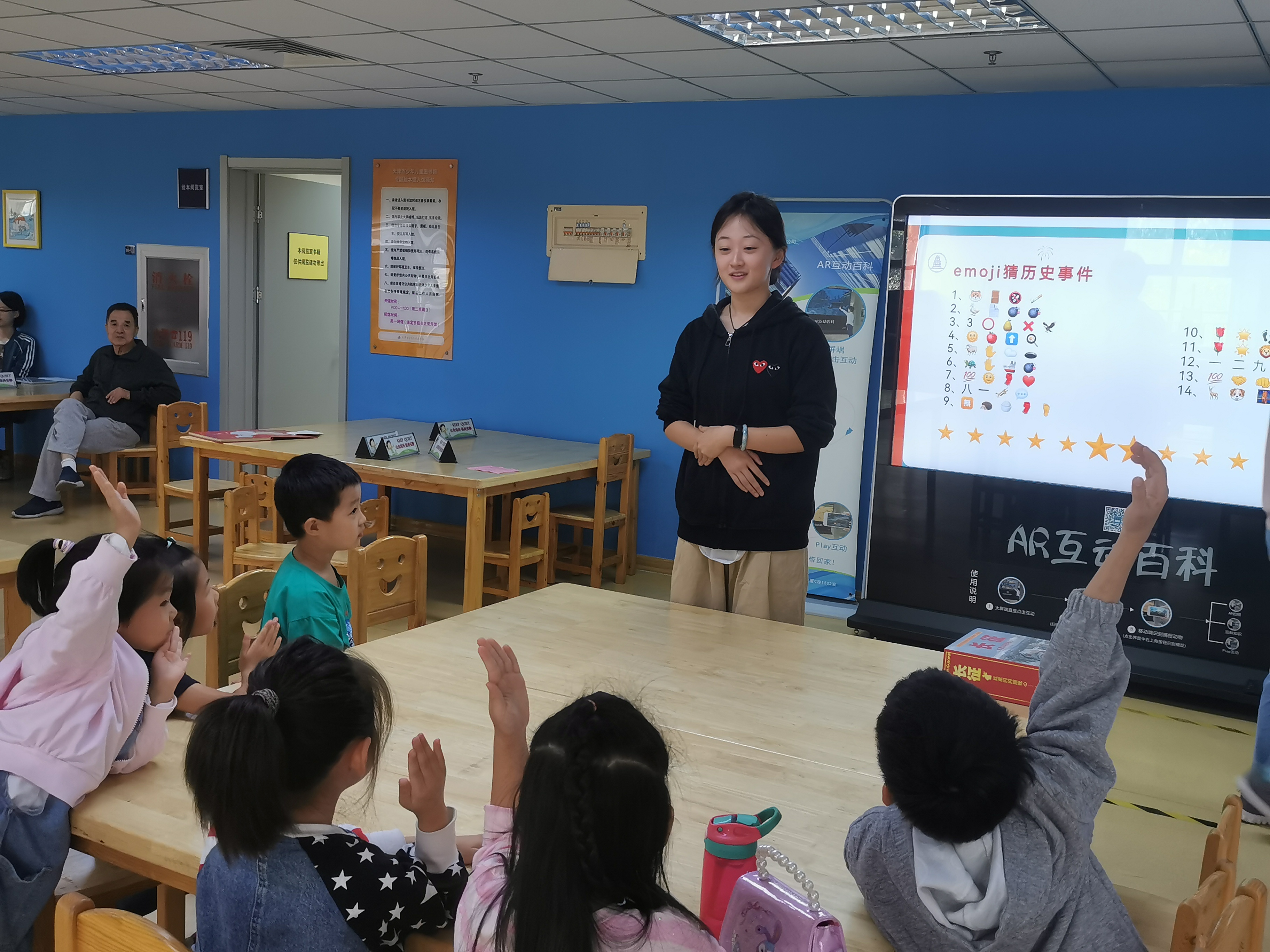 汽车图书馆在假日期间开展了“童”读和“夜”读活动,流动书车停靠在馆区一侧,阅读推广部延伸服务组引领市民和游客上车体验、阅览,讲解介绍车内特色文献资源,打造出一个温馨宁静的特色阅读港湾。海河教育园馆区在假期内举办的四期“津典·图书馆里的红色传承”之红色故事会以及梦娃绘本馆举办的“述长征精神”主题绘本赏读会,与小读者共读红色故事,传承使命担当。图书借阅部的举办的两场格物课堂带领小读者学习国庆节相关知识,体验手工制作。