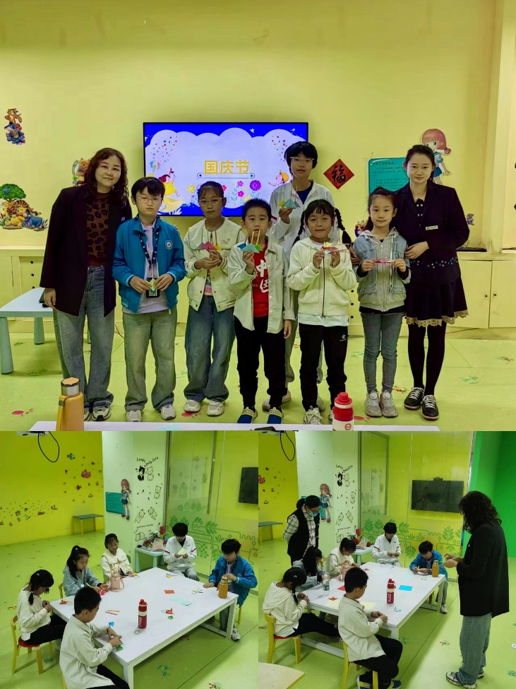 馆员老师为小朋友们讲述国庆节的由来、认识国旗国徽等知识,让小朋友充分了解国庆节的意义、以及国旗国徽中元素所代表的深刻内涵。随后观看了《厉害了我的国》视频短片,一起见证新中国成立75周年的辉煌历程,并用绘画的方式表达自己对祖国的美好祝福。