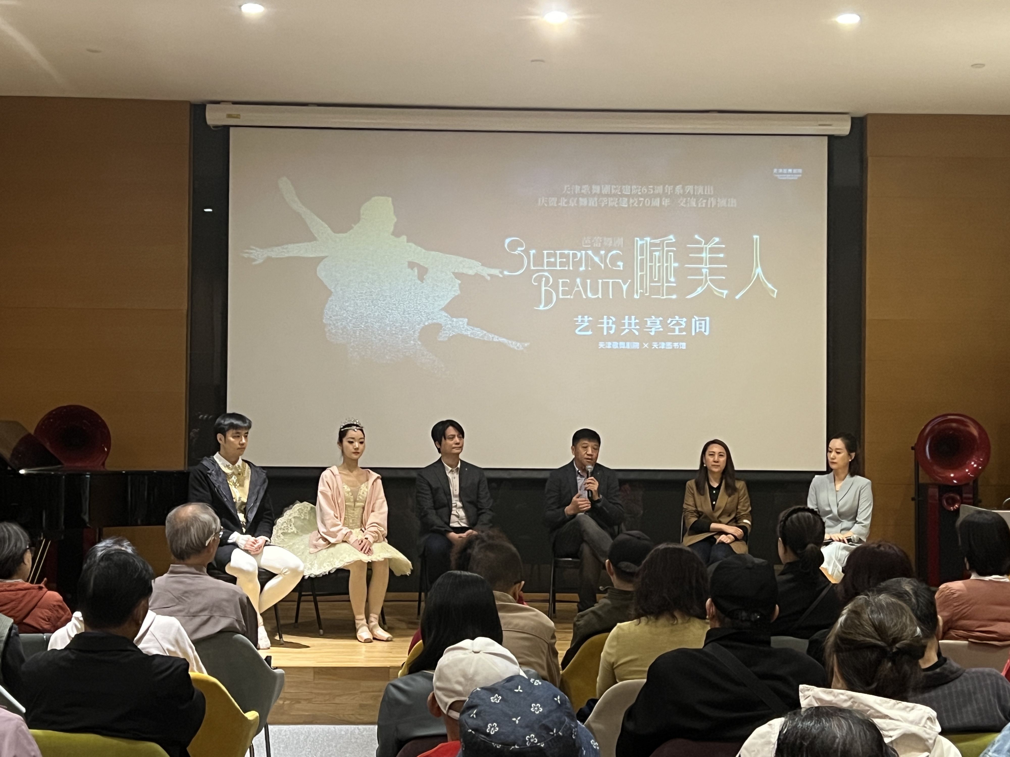 静静地旋转,轻轻地跳跃,在优美的旋律声中,今天的导赏拉开了序幕。天津歌舞剧院副院长、芭蕾舞团艺术总监陈川先生为读者讲述了天津歌舞剧院的发展历史。天津歌舞剧院芭蕾舞田宗文团长谈到了怎样培养一名优秀的芭蕾舞演员,身材条件和自身自律性对芭蕾舞演员来说都是要求很高的。优秀青年教员刘宇昊老师具体介绍了芭蕾舞的起源以及《睡美人》这部剧的创作背景。本剧的男女主演也来到了活动现场,和我们共同畅聊台前幕后的故事。