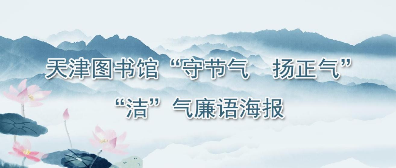 天津图书馆上线的“守节气 扬正气”——“洁”气廉语海报,力求将中华优秀传统文化与廉洁文化相结合,将适应时节的清风廉语与红色廉政教育基地相结合,将古诗古文与美图美景相结合,为读者打造优质的文化产品。愿天津图书馆和您,与二十四节气同呼吸、共成长。