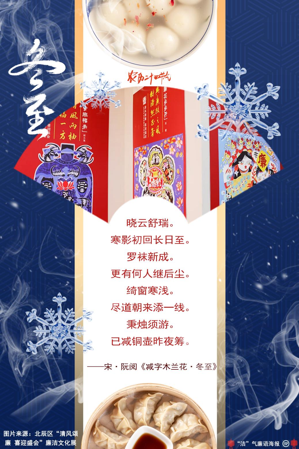 明日冬至丨天津图书馆“守节气 扬正气”——“洁”气廉语海报