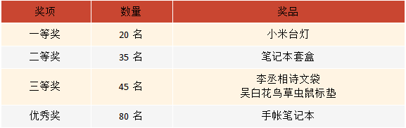 一等奖 小米台灯 二等奖 笔记本套盒