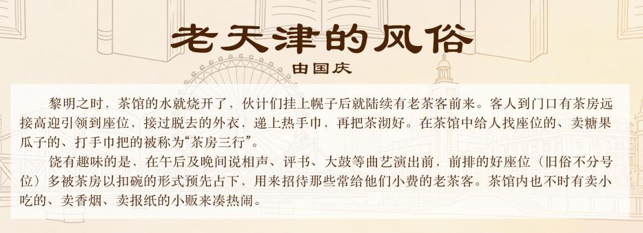 《月令七十二候集解》有言:“三月中,自雨水后,土膏脉动,今又雨其谷于水也。”谷雨,是春季最后一个节气,雨润百谷,万物向荣,也为津门的春日,送来一缕最动人的茶香。
