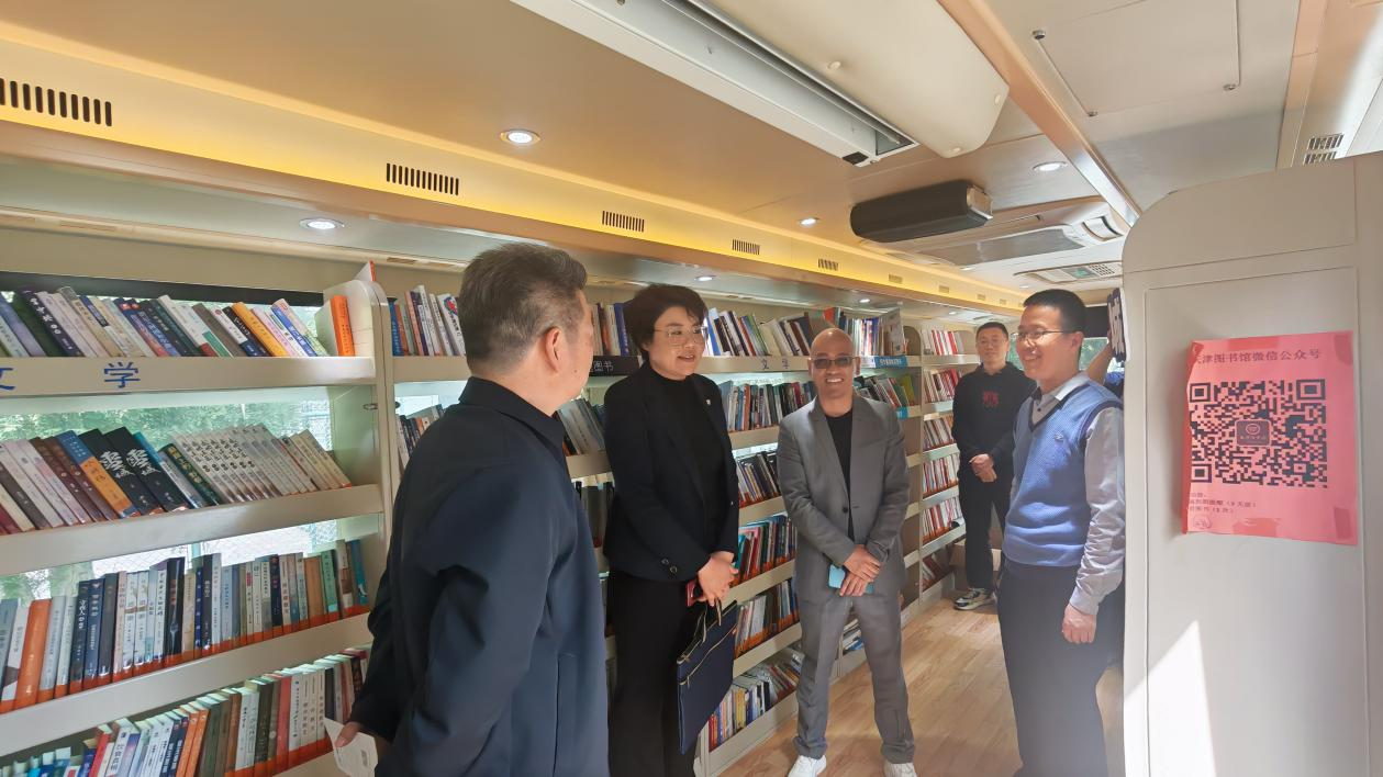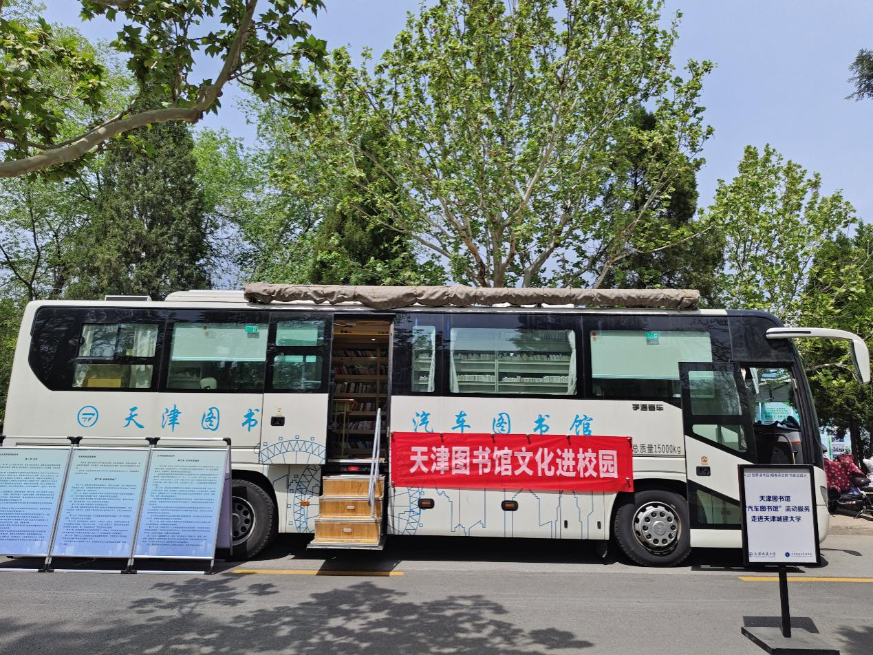 为迎接世界读书日,深入推进全民阅读,助力书香校园建设,4月21日,天津图书馆汽车图书馆驶入天津城建大学,参与“书香城大”2026年晒书节活动,将流动的书香与丰富的阅读服务带到师生身边。天津图书馆党委副书记、馆长刘云鹏与天津城建大学相关领导一同登上汽车图书馆,实地参观并指导工作。
