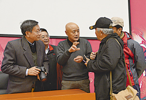 全环摄影网专家巡讲团近日来到天津图书馆与近200名摄影人交流。图为清华美院苏民安教授(左三)与摄影人互动。