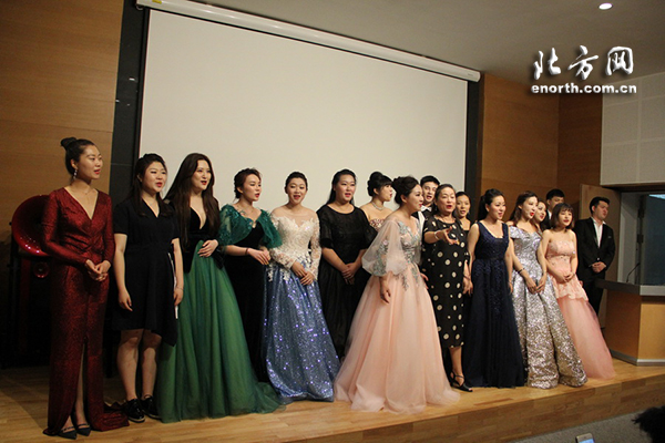 讲座后半场马老师的优秀学生们给我们带来了一场精彩的示范演出。一首著名作曲家柴可夫斯基的《离离原上草》,Op.47 No.7拉开了示范演出的序幕,德沃夏克的歌剧《水仙女》第一幕水仙女所唱的咏叹调《月亮颂》,表现了水仙女对爱情的渴望,是一首旋律优美、动人心弦的歌曲。中国歌曲《梧桐树》把歌曲意境和内涵演绎的淋漓尽致。全曲旋律优美而不柔弱,情深而不缱绻的苏联民歌改编而成的《小路》,歌声中透着坚强和勇敢,给人一种向往美好战胜困难的勇气。众多经典歌剧如咏叹调歌剧《费加罗的婚礼》中“美妙的时刻将来临”、“你想要跳舞,我的小伯爵”;《唐璜》中的“夫人,请看这名单”等曲目也都以不同的形式展现给了大家。采用花腔唱法的中国歌曲“彩云与鲜花”,充分的表达了歌曲的情感,使歌曲达到了高潮。歌剧咏叹调《木偶之歌》也是一首充分展现花腔女高音声部魅力的佳作,我们有幸目睹学生丰富的表演空间和高超的演唱技能,赢得了现场观众的热烈掌声。
