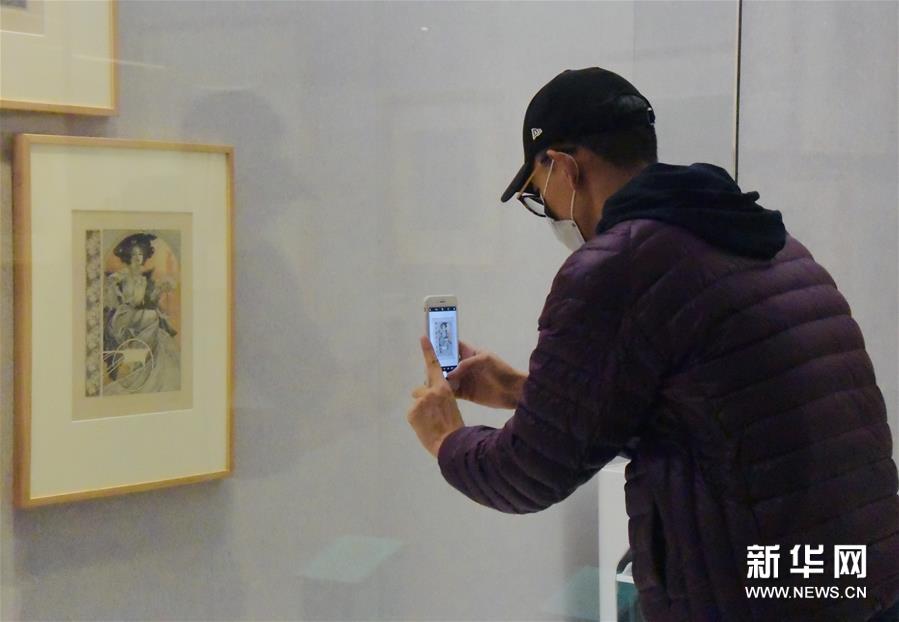 3月26日,观众在天津美术馆用手机拍摄展品。