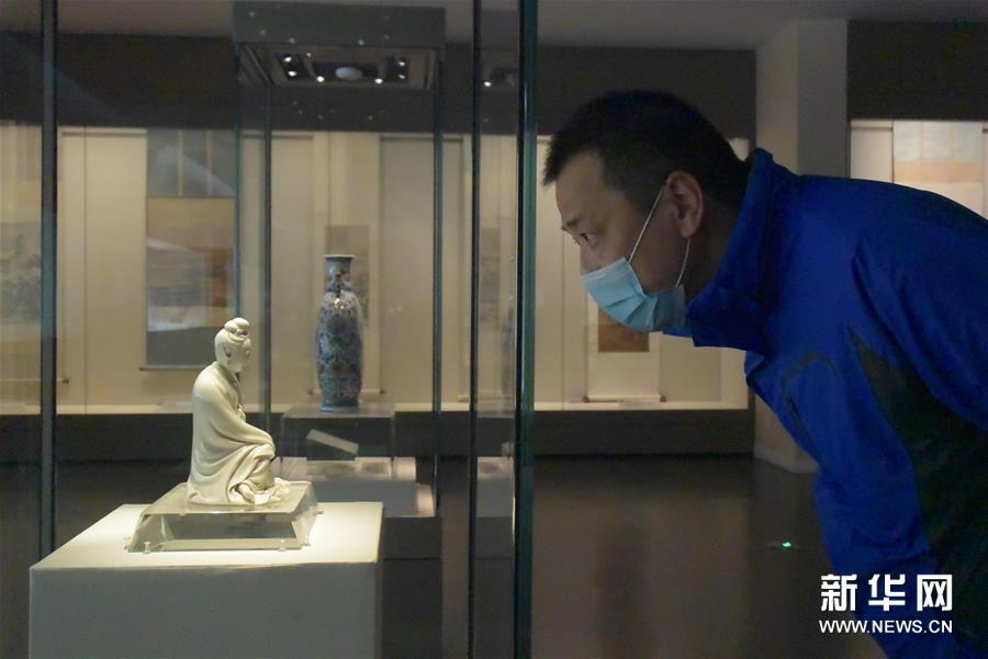3月26日,观众在天津博物馆参观。当日,天津博物馆、天津图书馆、天津美术馆、天津自然博物馆等一批文化场馆开始恢复有序开放。为防控新冠肺炎疫情,这些场馆均采取网上实名预约、观众总量控制、分时分流、分区开放等措施。