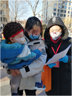 直到1月11日晚上8点多,馆团委向本人了解参加社区一线筛查任务的基本情况时,海河园馆区的团员张可旺、办证处青年崔婧,还依然身着防护服奋战在一线。他们分别在津沽路新业里社区、咸水沽世茂御龙湾合盈园盈畅社区,参与信息录入登记、核酸检测秩序维护等工作。在系统出现紧急故障后,协助社区工作人员进行手动录入,直至手被冻僵。他们克服身着防护服行动不便、饮食不便等一系列困难,顶着寒风坚守岗位,在核酸检测现场形成暖心“志愿红”和坚韧“抗疫白”的感人画面。