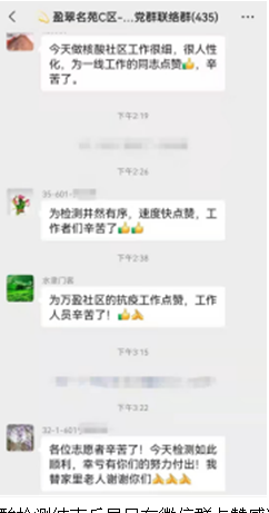 “在比较紧急的情况下,作为党员没有多想,就是能为社区尽一份力,能为群众做一份贡献。”党务人事支部的青年党员陈界同志,看到河东区大洋嘉园社区志愿者招募的公告后,第一时间向社区报到。1月9日晚,协助社区工作人员进行核酸检测现场筹备工作,并于晚上7点正式开始检测组织工作。第二天早上7点又早早来到工作岗位,与其他工作人员一起奋战3小时结束全部的检测任务。