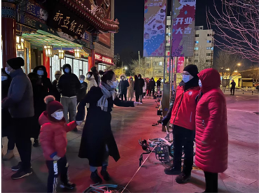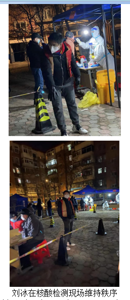 1月12日上午11点到13日凌晨1点,党务人事支部委员刘冰,积极响应河西区柳林街景雅里社区号召,参与第二轮核酸检测筛查的现场秩序维护等工作。