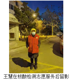 综合办公室入党积极分子王秀光,1月12日主动到河东区二号桥社区金地紫月名轩社区报到,连续十小时配合居委会协调居民开展第二轮核酸筛查预约登记、检测现场秩序维护、答疑等工作。