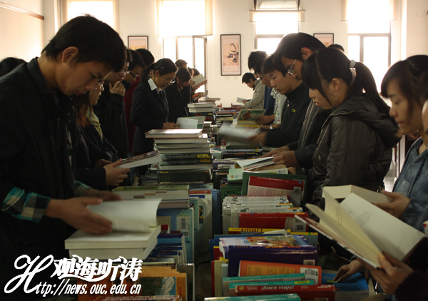 本站讯4月7日至4月9日,图书馆在崂山馆斯文堂举办以“服务于高等教育,送益于广大师生”为主题的原版外文图书转赠活动。三天共接待受益读者1045人,转赠各种外文书刊2990册。